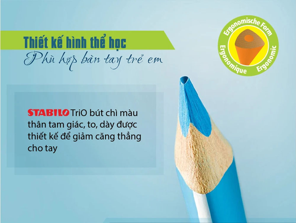 - Bút chì màu thân tam giác, dễ cầm - Ruột to 4.2mm (>50% so với chì màu thường) - Tô nhanh, khó gẫy, màu tươi - Xuất sứ: Séc