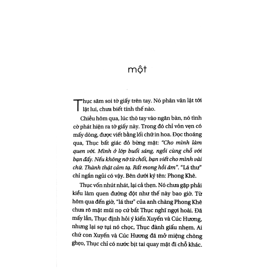 Câu chuyện bắt đầu từ lá thư làm quen để trong học bàn của Thục, trong bộ ba Xuyến, Thục, Cúc Hương. Lá thư chân tình đã thu hút sự tò mò của bộ ba, và họ bị cuốn hút vào trò chơi với người giấu mặt, dần hồi kéo theo Phán củi, anh chàng xấu xí vụng về của lớp làm quân sư và giúp xướng họa thơ. Cuộc truy tìm dẫn mọi người đến nhiều hiểu lầm tai hại và cả những bất ngờ thú vị. Và điều bất ngờ cuối cùng đã được phát hiện quá muộn. Vì sao? Xin để cho bạn đọc tự khám phá.