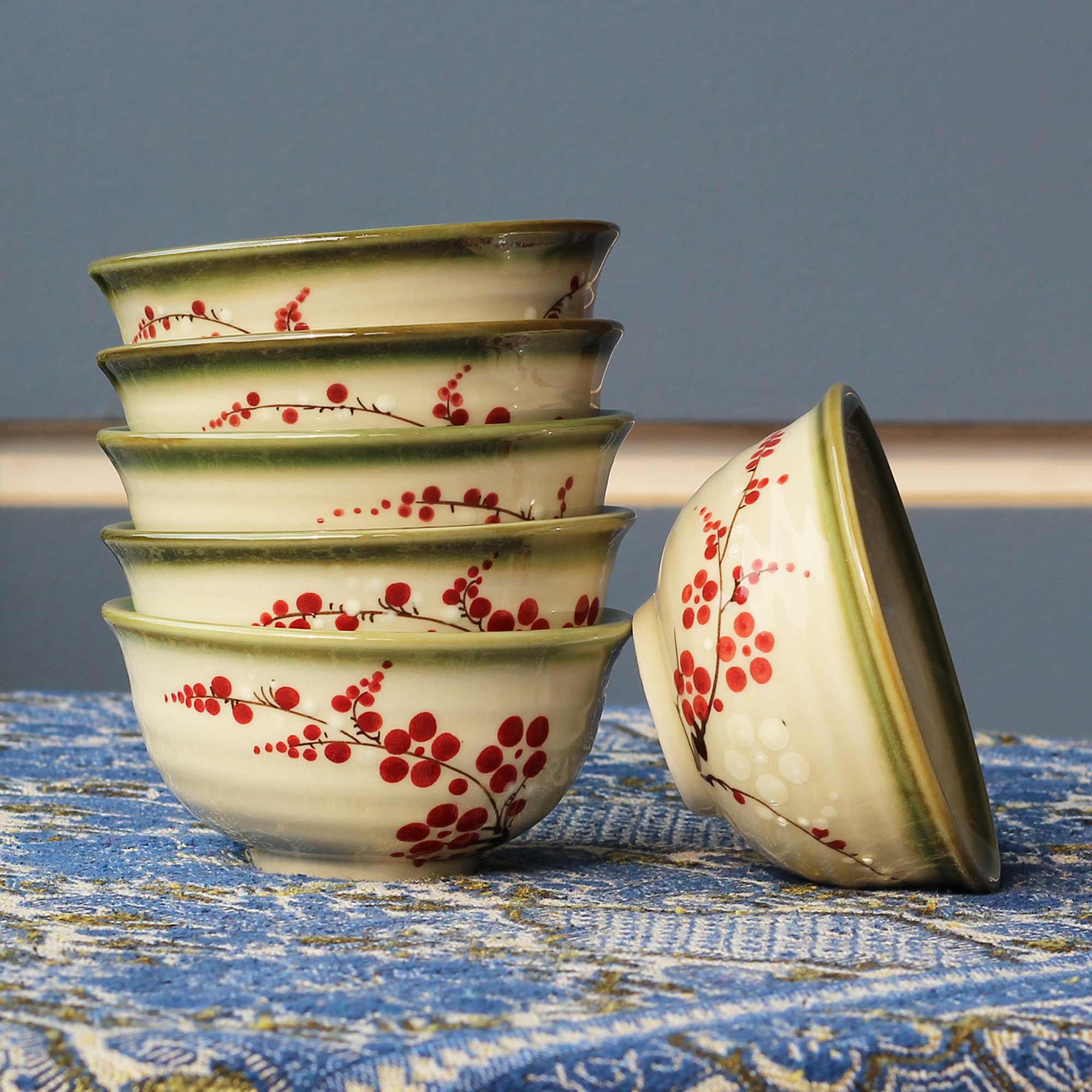 Bát Salat - Bát Cơm Miệng Hoa - Bát Sứ Kẻ Viền Vàng Vân Sứ Sần | Bát Sứ Decor Phong Cách Nhật Bản Hoa Anh Đào Cao Cấp Lấy cảm hứng từ Hoa Anh