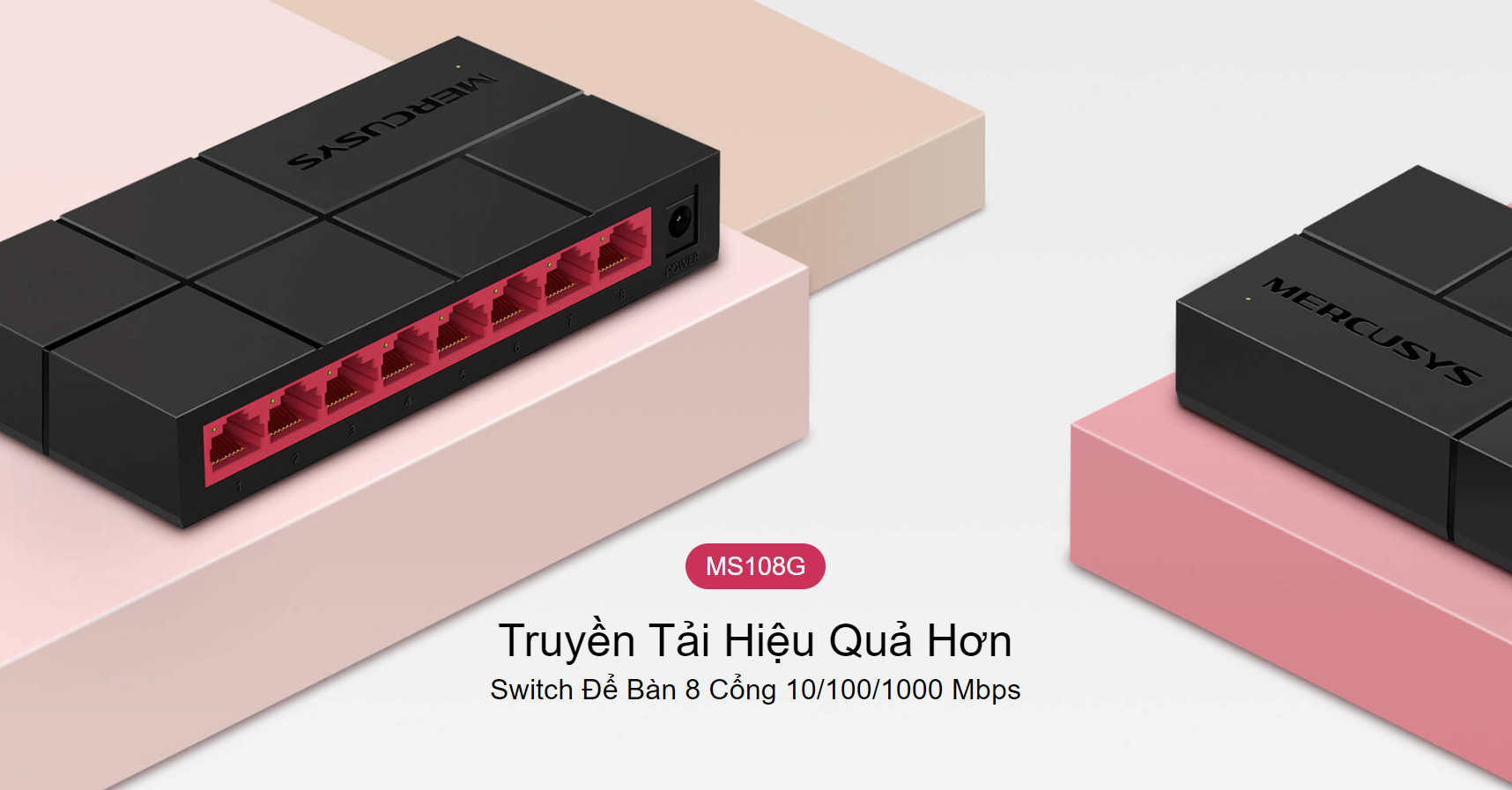 Bộ sản phẩm gồm: 1 thiết bị Mercusys MS108G. + Bộ chuyển đổi nguồn. + Hướng dẫn cài đặt nhanh