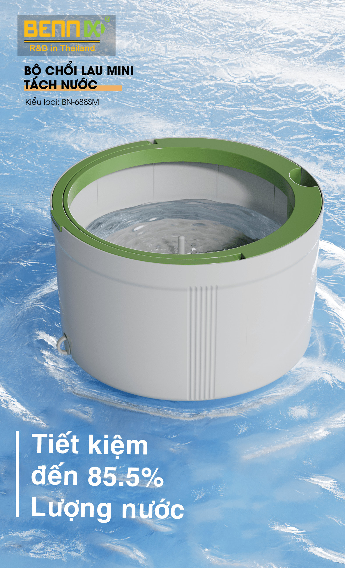✨Bộ Chổi Lau Nhà Mini Tách Nước Bẩn Bennix Thailand, Cây Lau Nhà Tự Vắt Thông Minh BN-688SM Kèm Thùng Cao Cấp- Hàng Chính Hãng