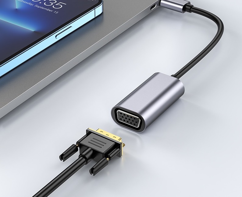 Chất liệu: Hợp kim nhôm + ABS, Kích thước: 45*23.7*13.8mm; trọng lượng: 15g Chiều dài dây: 130mm ± 4mm Giao diện: Type-C male to VGA Female Độ phân giải: 1080P (1920*1080 @ 30hz) giao diện