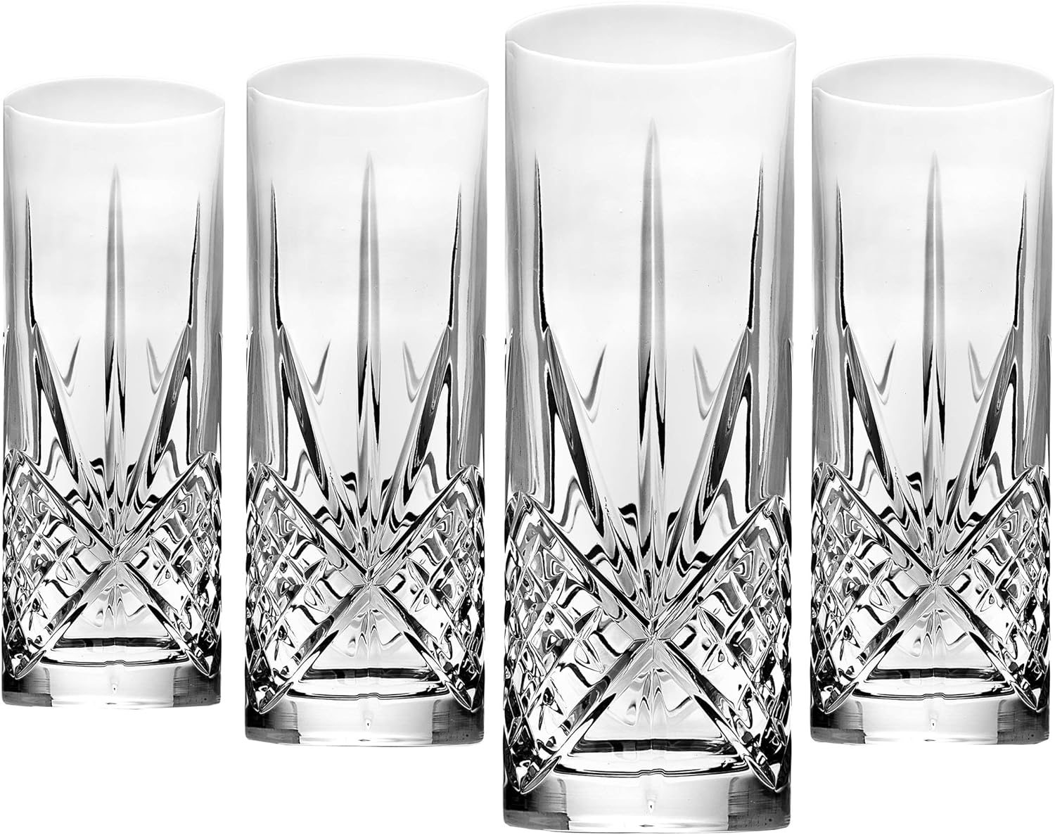 Hãng Godinger luôn cho ra đời những sản phẩm pha lê vô cùng chất lượng, tinh tế. Bộ cốc cao pha lê Godinger Dublin, 4 chiếc được chế tác với chất liệu là pha lê không chì, có độ bền cao, cầm nặng tay và sử dụng công nghệ chống vỡ, xước và rạn nứt hiệu quả. Bộ sản phẩm dùng để uống nước, sinh tố, nước hoa quả hay các loại đồ uống màu sắc khác tại nhà bếp, phòng khách, phục vụ tại bàn ăn, bàn tiệc.
