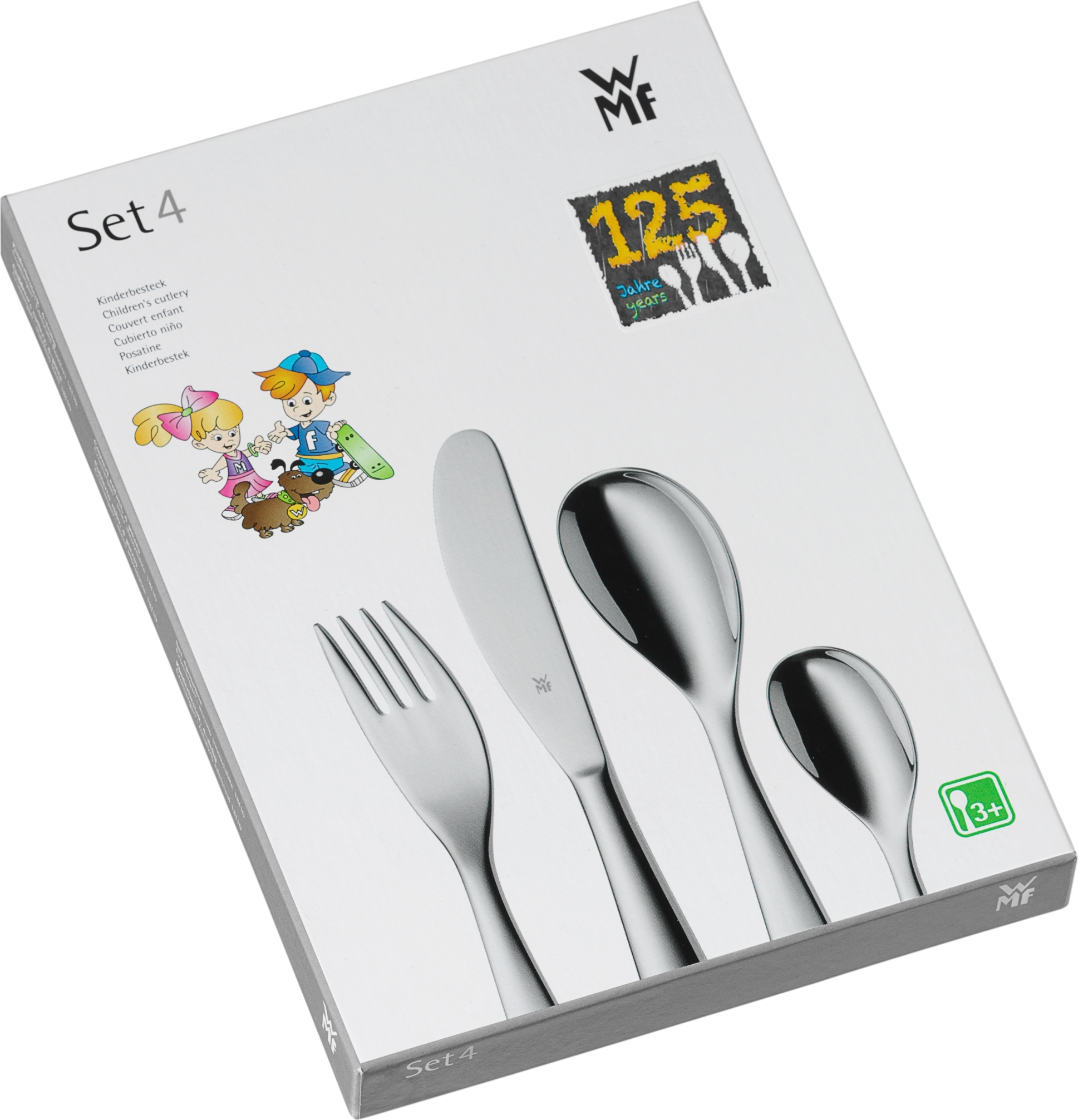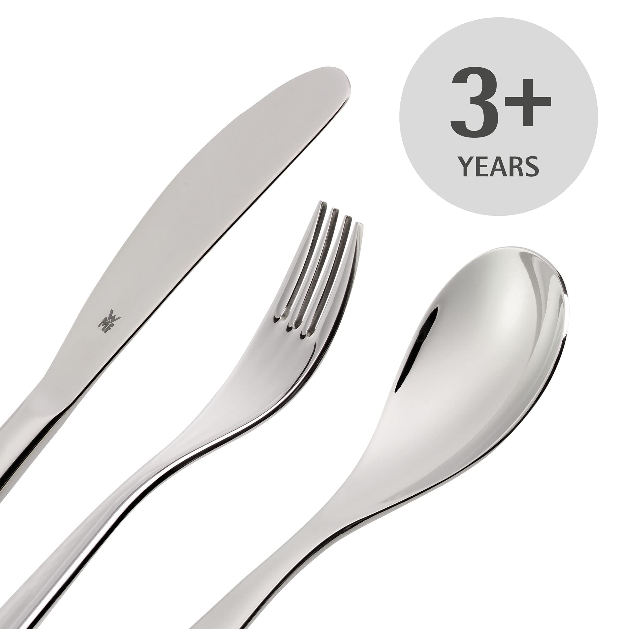 Bộ dao kéo lùn WMF của WMF gồm 4 phần: dao, nĩa, thìa và thìa cà phê. Các cạnh dao kéo được bo tròn chắc chắn. Bề mặt của mỗi bộ phận đều sáng bóng và