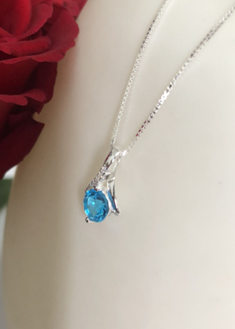 ✨Bộ dây chuyền liền mặt trang sức bạc Ý S925 Huệ Ngân- Giọt sương PP1712-XANH DƯƠNG
