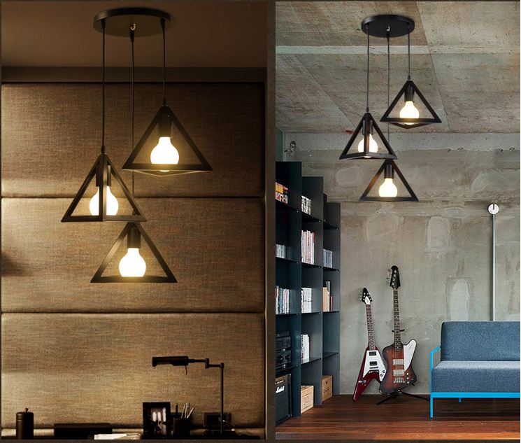 Bộ 3 đèn thả trang trí khối tam giác đa chiều trang trí cao cấp KÈM BÓNG LED Đường kính đèn 25cm. Làm bằng khung sắt sơn tĩnh điện. Phù hợp cho