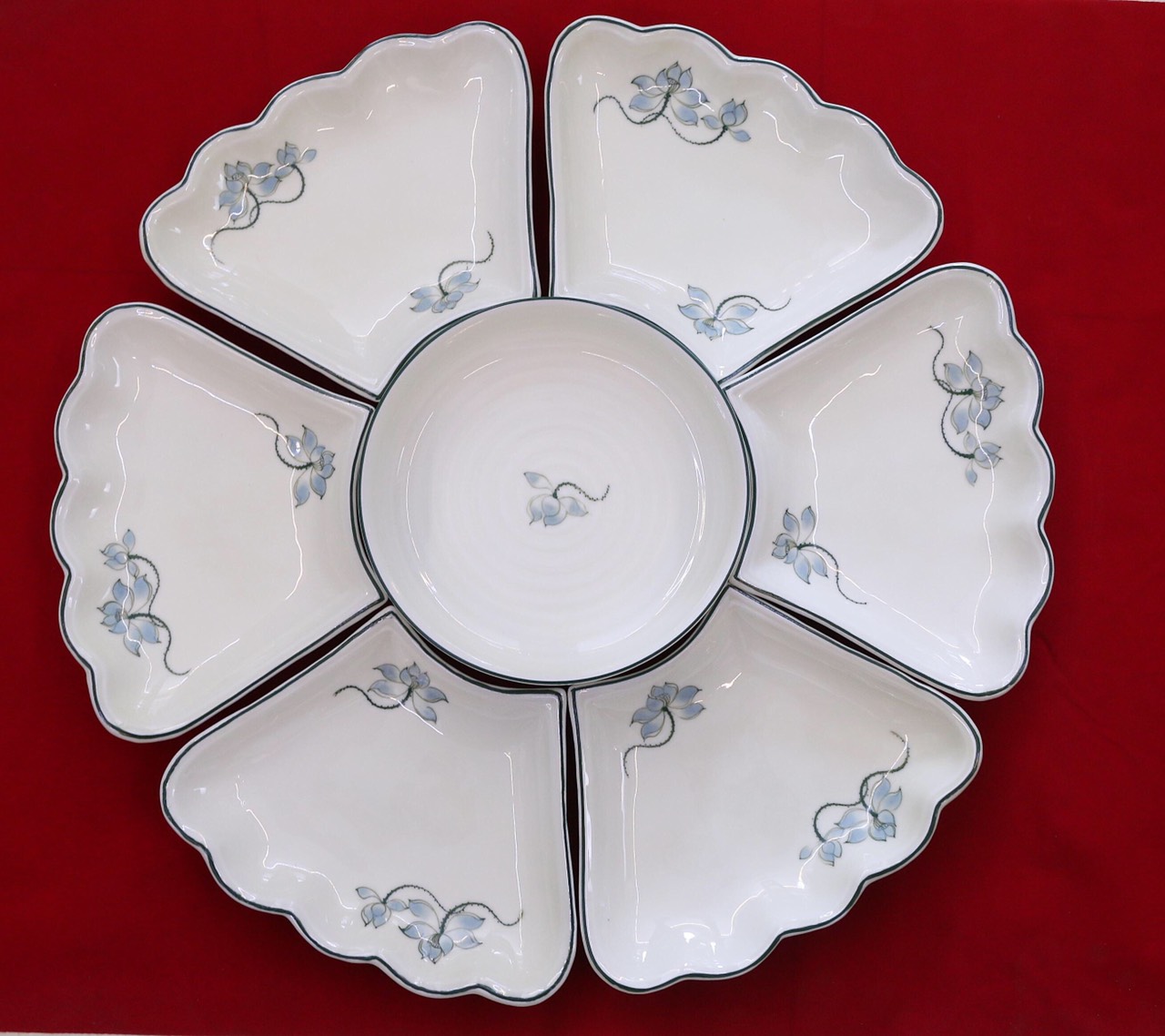 ✨Bộ đĩa mặt trời hoa sen gốm sứ Bát Tràng