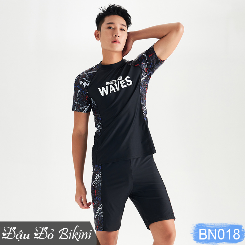 - Mẫu quần áo bơi cao cấp mới nhất với thiết kế thể thao khoẻ khoắn cho các bạn nam. - Chất vải thun bơi co giãn, ôm sát, dễ dàng vận động trong nước,