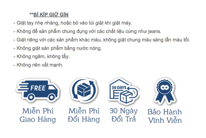 • Giặt riêng với các sản phẩm khác màu, không giặt chung màu sáng lẫn màu tối.