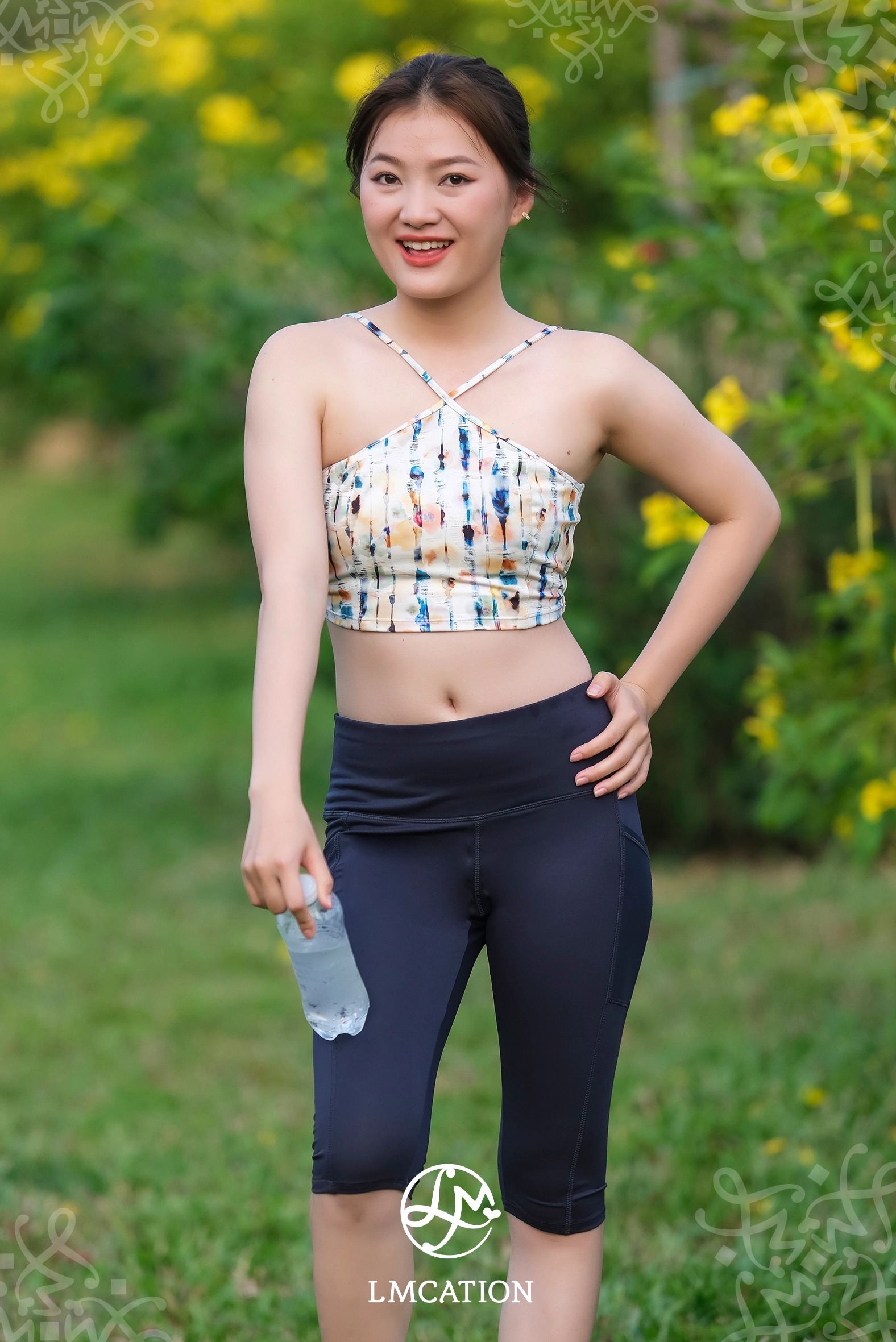 Bộ đồ thể thao LMcation - Áo ngực thể thao cổ yếm Sophie - Sọc đủ màu & Quần lửng thể thao trên gối túi 2 bên - Xanh đen được may đo tỉ mỉ bởi cộng đồng phụ nữ LMcation, để tôn dáng và che khuyết điểm cho phụ nữ với bất kỳ hình dáng hay màu da nào. Mỗi sản phẩm được cắt may bởi một trong những đối tác nữ của chúng tôi ở Việt Nam, chúng tôi tạo cơ hội cho các cộng đồng phụ nữ và đào tạo tay nghề cho họ để họ có tương lai tốt đẹp và thu nhập bền vững hơn. Sản phẩm được đóng gói bằng túi vải có thể tái sử dụng là thành phẩm từ bàn tay của cộng đồng người khuyết tật.