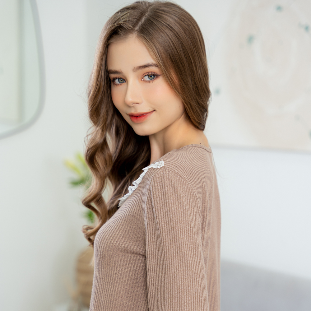 Đồ bộ mặc nhà WANNABE BDS41 đồ bộ quần dài phối áo 2 dây cúp ngực viền ren gợn sóng mang lại vẻ gọn gàng nữ tính Đồ bộ mặc nhà phi lụa cao cấp
