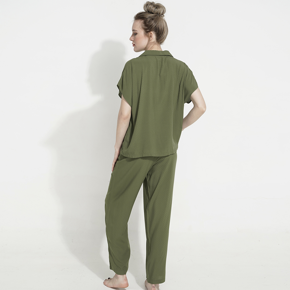 Pyjama mặc nhà màu nâu họa tiết chấm bi xanh - LA MỘC chất liệu vải SATIN LỤA. Thiết kế chú trọng từng đường may. Mang lại cảm giác thoải mái cho người mặc. Mang
