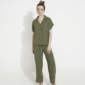 Đồ bộ mặc nhà WANNABE BDS41 đồ bộ quần dài phối áo 2 dây cúp ngực viền ren gợn sóng mang lại vẻ gọn gàng nữ tính Đồ bộ mặc nhà phi lụa cao cấp