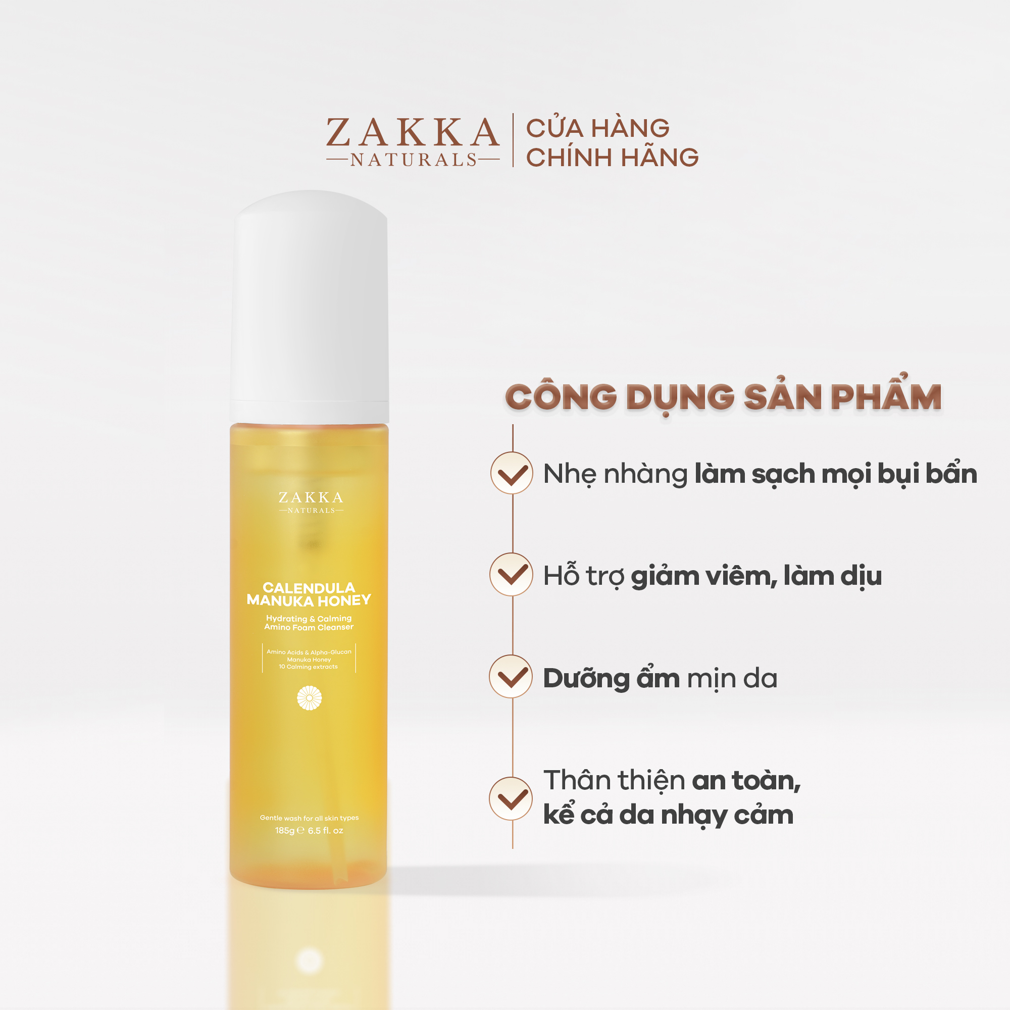 BỘ SẢN PHẨM BAO GỒM: 1 Sữa Rửa Mặt Hoa Cúc Làm Sạch Dịu Nhẹ Dưỡng Ẩm Calendula Manuka Honey Hydrating & Calming Amino Foam Zakka Naturals 185g 1 Toner (Nước Cân Bằng)