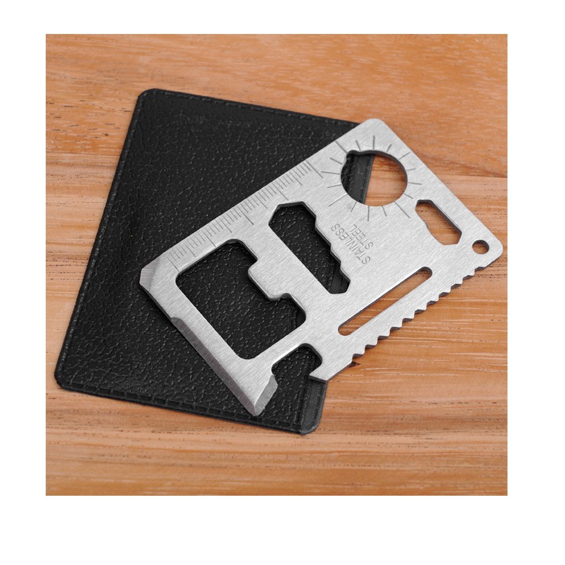 Bộ dụng cụ sinh tồn SOS bao gồm: bộ kìm đa năng như đèn pin, dao nhỏ, cưa nhỏ, kìm, đánh lửa, la bàn, dây cưa cầm tay, móc nhôm leo núi, dao đa năng.
