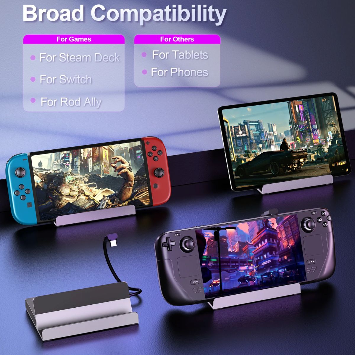 - Bộ Hub chuyển đổi 5in1 Choetech HUB-M77 Docking Station được thiết kế để tương thích rộng rãi với nhiều thiết bị khác nhau, từ điện thoại thông minh, máy tính bảng đến Steam Deck, Rog Ally và nhiều loại laptop sử dụng cổng Type C. Điều này đảm bảo rằng bạn có thể sử dụng bộ hub này cho nhiều mục đích khác nhau, từ công việc hàng ngày, học tập đến giải trí và chơi game.