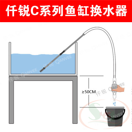 Bộ hút phân cặn Qanvee C300, C600, E3, E6 thay nước bể với thiết kế đơn giản dễ dàng lắp ráp, ống bóp tay mồi nước giúp việc vệ sinh hồ, hút phân cá tép