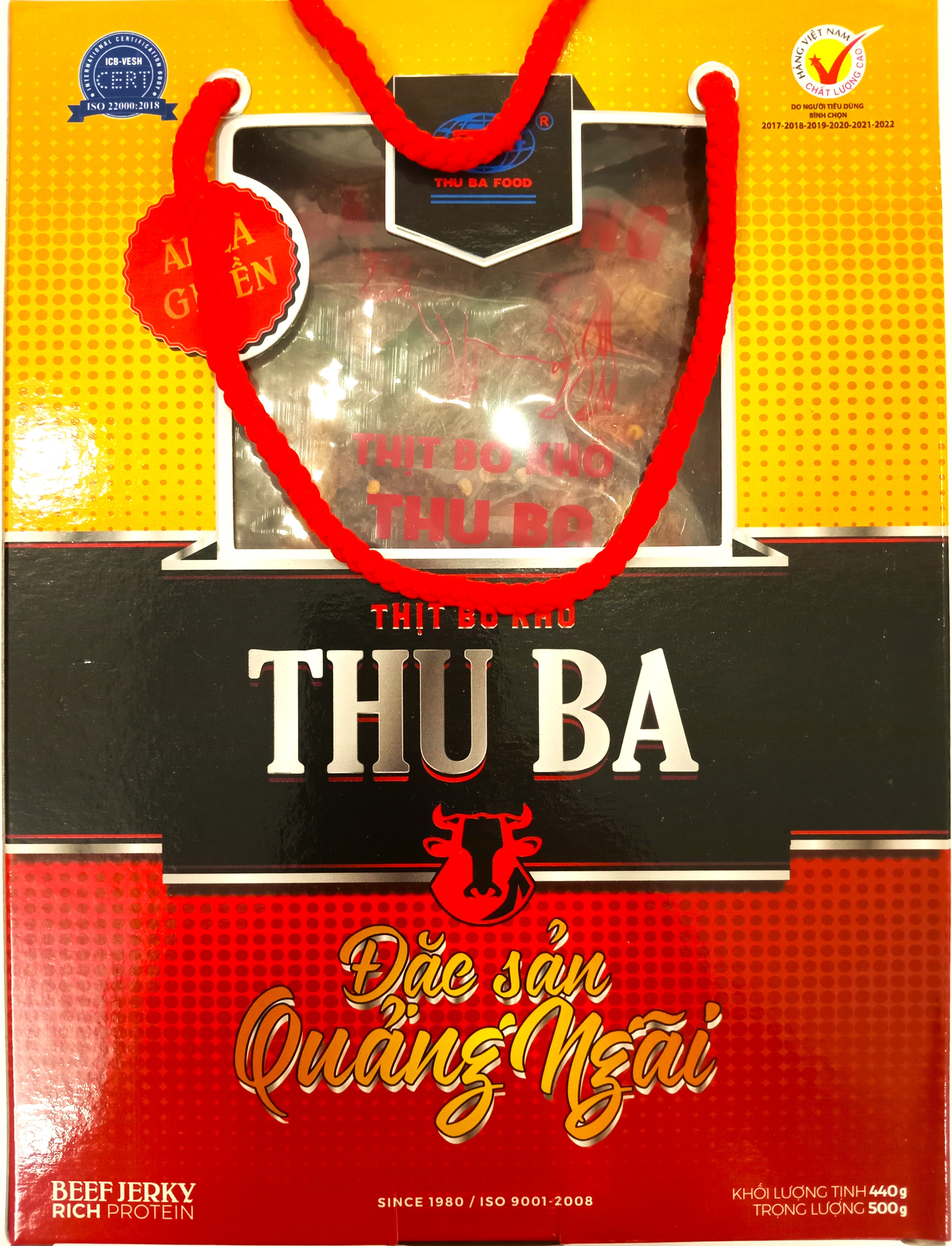 BÒ KHÔ THU BA là món đặc sản Quảng Ngãi, đạt tiêu chuẩn ISO 22000:2018 và là Hàng Việt Nam Chất Lượng Cao do Người tiêu dùng bình chọn Sản phẩm được sản xuất theo công thức