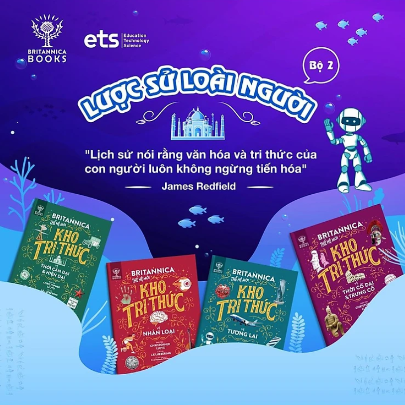 Britannica Thế hệ mới là sản phẩm của Encyclopedia Britannica, chuyên trang nổi tiếng trên toàn thế giới về dòng sản phẩm Bách khoa thư. Bộ sách gồm 8 cuốn, tương ứng với 8 chủ đề, hứa hẹn làm giàu thêm vốn kiến thức của độc giả từ khoa học tự nhiên (Vũ trụ, Trái đất, Sự sống, Vật chất) đến khoa học xã hội (Nhân loại, Thời cổ đại & trung cổ, Cận đại & hiện đại, Tương lai). Cách phân bổ nội dung theo từng chủ đề này khác với phong cách truyền thống (sắp xếp theo thứ tự A-Z), không chỉ đem lại diện mạo mới cho dòng sách mà còn giúp độc giả có thể lựa chọn đọc theo mảng kiến thức yêu thích hoặc còn cần trau dồi thêm. Đặc biệt, nhóm 4 cuốn Lược sử loài người được trình bày theo dòng thời gian như một câu chuyện kể từ thuở sơ khai đến cả những dự đoán tương lai, vừa giúp dễ hình dung, vừa khơi gợi trí tưởng tượng ở độc giả.