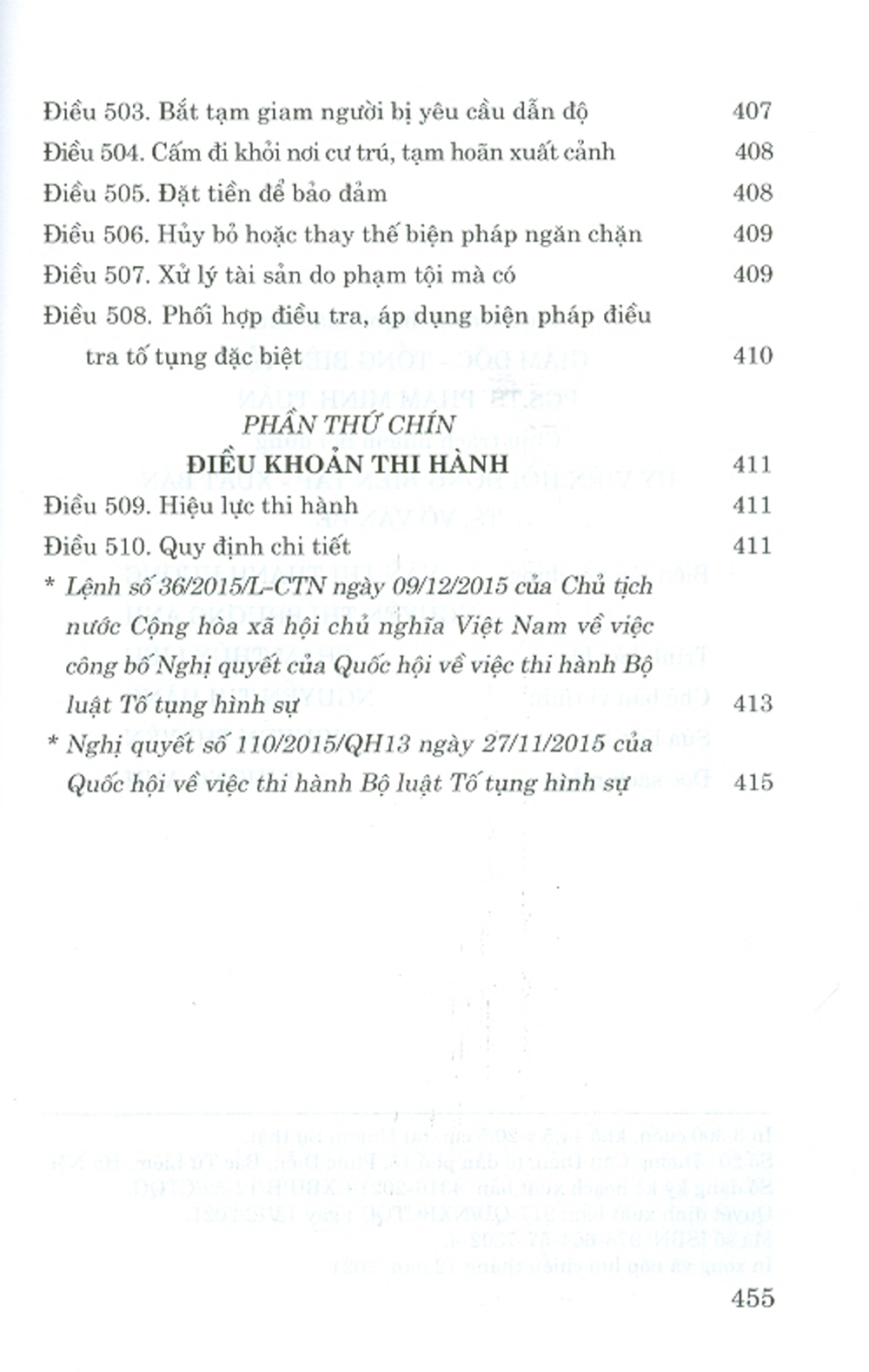 Phiên bản Bộ luật tố tụng hình sự năm 2015 (đính kèm 4 trang nội dung chỉnh sửa năm 2021), nên bạn đọc cân nhắc khi mua tham khảo Bộ luật tố tụng