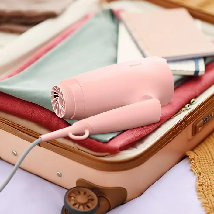 Thiết kế nhỏ gọn với công suất 1200W Máy sấy tóc Philips BH010 sở hữu thiết kế nhỏ gọn, tay cầm của máy có thể gấp gọn, thuận tiện cho vào vali túi xách khi đi