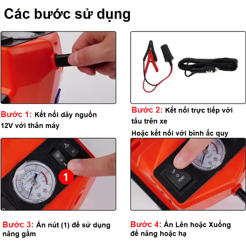Bộ nâng kích gầm điện, kiêm máy bơm lốp và máy siết ốc ô tô đa năng 3 trong 1