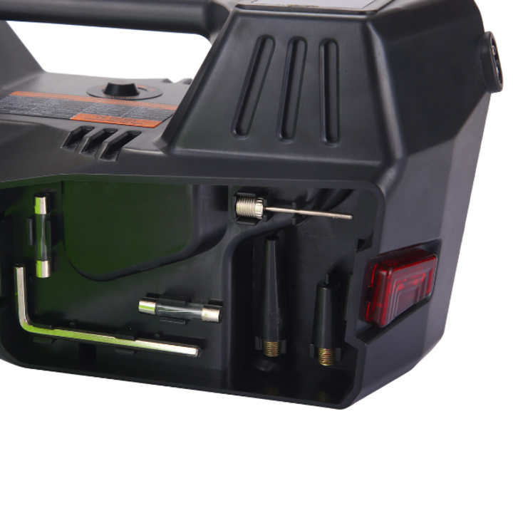 - Bơm hơi : Sức nén tối đa 150PSI, công suất 35L/phút Sản phẩm kèm theo : Găng tay bảo hộ, 2 cầu chì sơ cua, dây cáp kẹp lấy điện từ ắc quy, búa thoát hiểm chỉ cần đưa dây an toàn vào khe có gắn lưỡi dao là có thể dễ dàng cắt đứt dây và thoát hiểm. Phần búa đục với đầu nhọn, tập trung lực lớn, giúp làm vỡ kính xe (Lưu ý khi đập kính xe, nên đập ở góc, vì kính xe là kính cường lực, do đó, đập ở góc sẽ dễ dàng vỡ kính ở giữa tấm kính), 2 đầu khẩu 2 chiều 17mm-19mm-21mm-23mm phù hợp với hầu hết ốc bánh xe của các dòng ô tô cỡ vừa và nhỏ