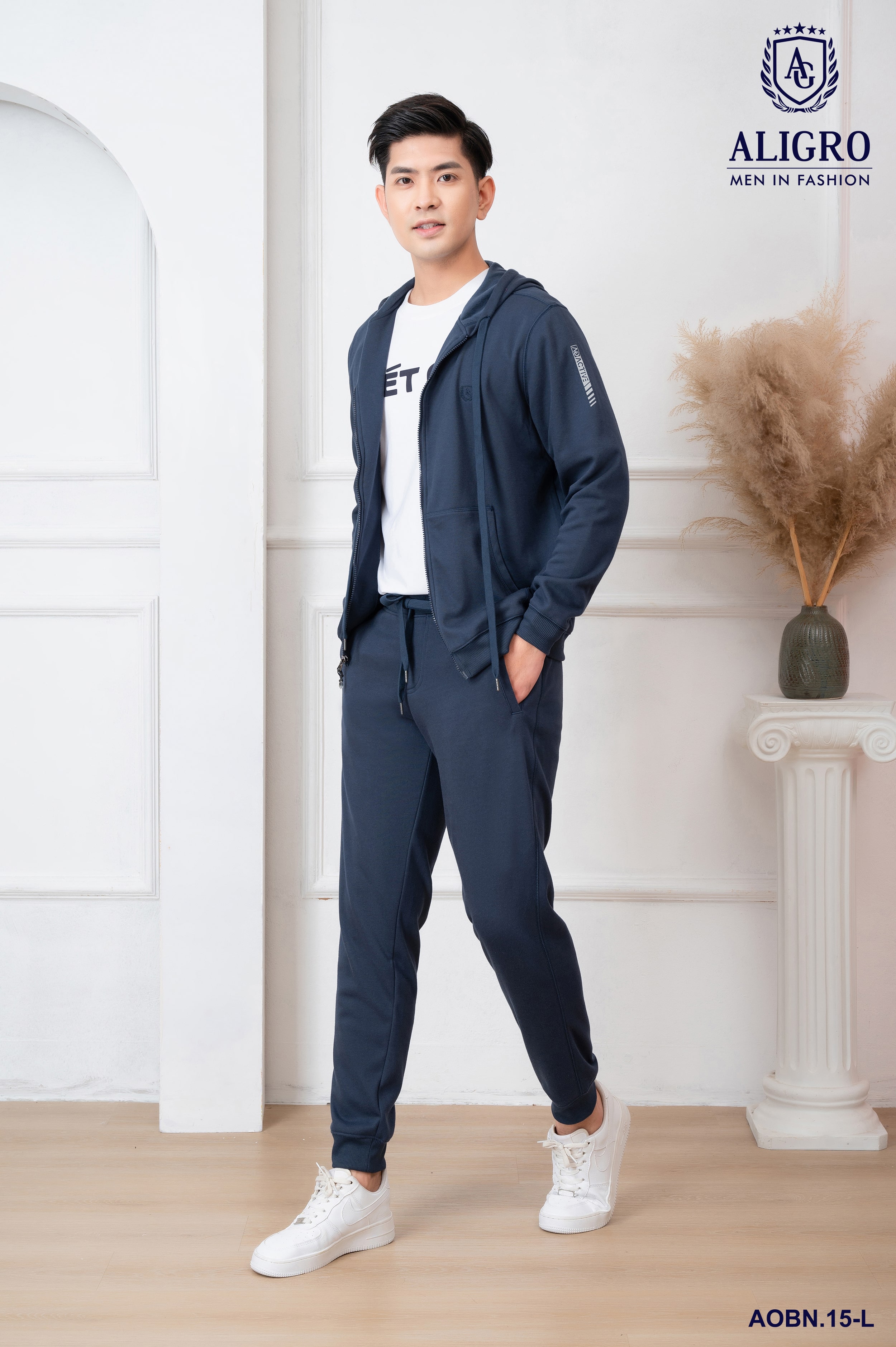 ✨Bộ nỉ hoddie ALIGRO kéo khóa có mũ màu navy BN.15