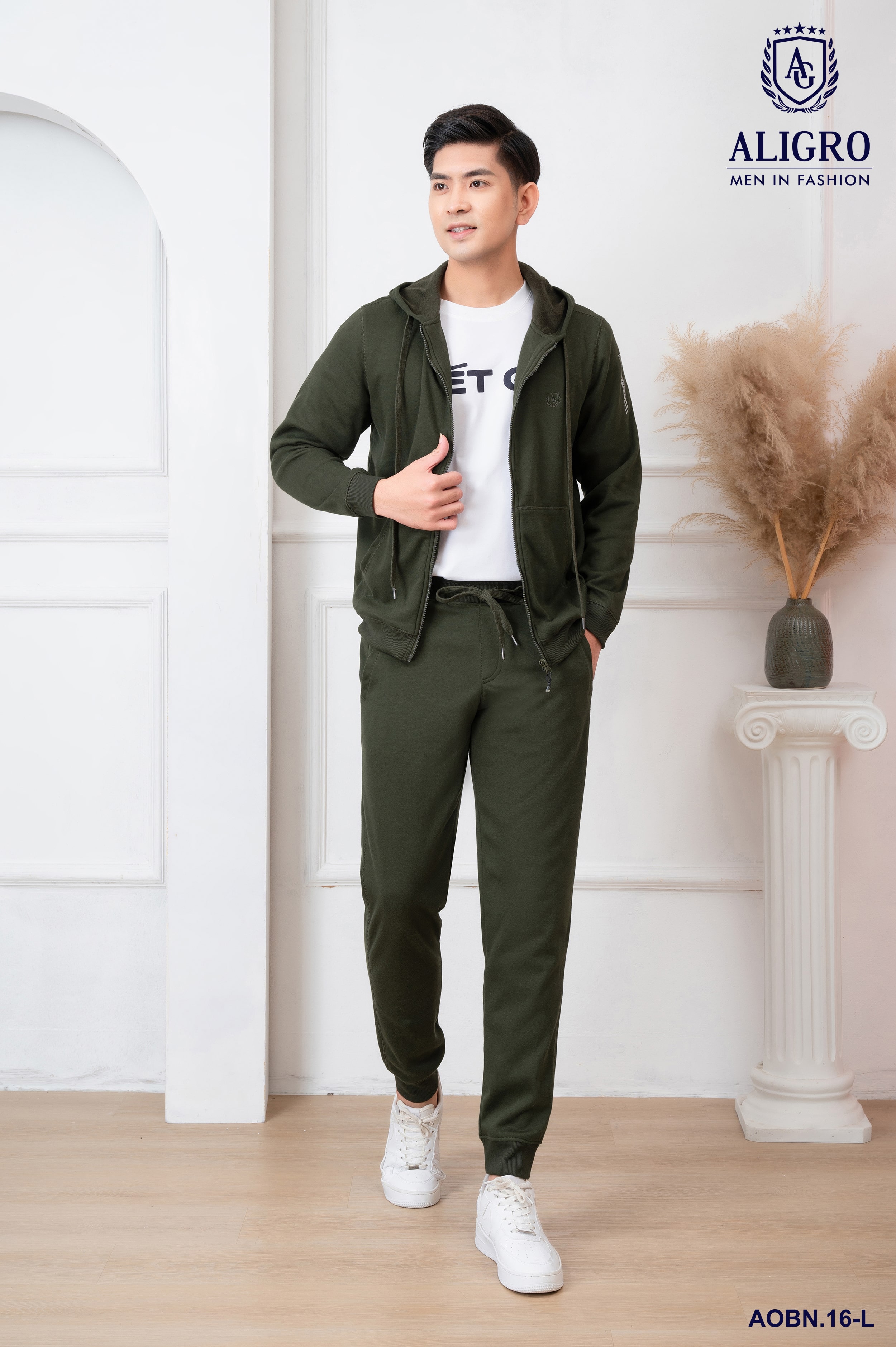✨Bộ nỉ hoddie ALIGRO kéo khóa có mũ màu xanh rêu BN.16