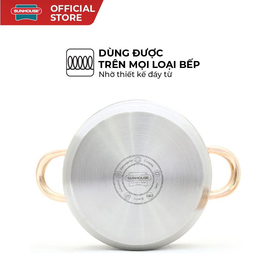 Bộ nồi Inox SUNHOUSE 5 đáy có thể sử dụng trên mọi loại bếp, kể cả bếp từ.
