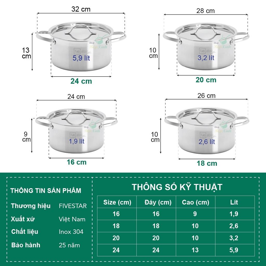 Bộ nồi chảo xửng hấp 3 Đáy Inox 430 cao cấp Fivestar Standard bếp từ nắp kính , tặng 1 vá canh Bộ nồi inox có 9 món gồm : +Quánh có đường kính