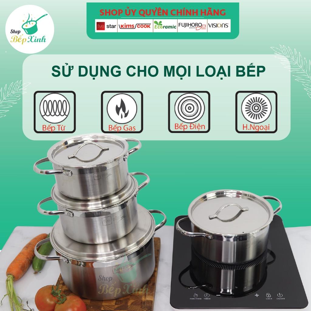 Bộ nồi FiveStar Plus FS08CG-304 inox 304 3 đáy bếp từ 4 chiếc nắp kính