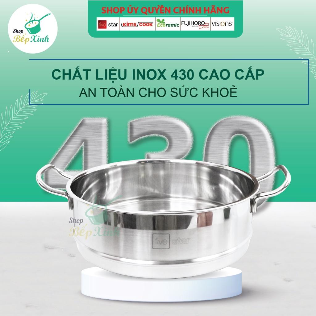 Bộ nồi xửng cao cấp Fivestar 4 món 3 đáy từ , nắp kính ( tặng 1 sạn inox ) Bộ nồi gồm : 1 nồi 16cm , 1 nồi 20cm , 1 nồi 24cm