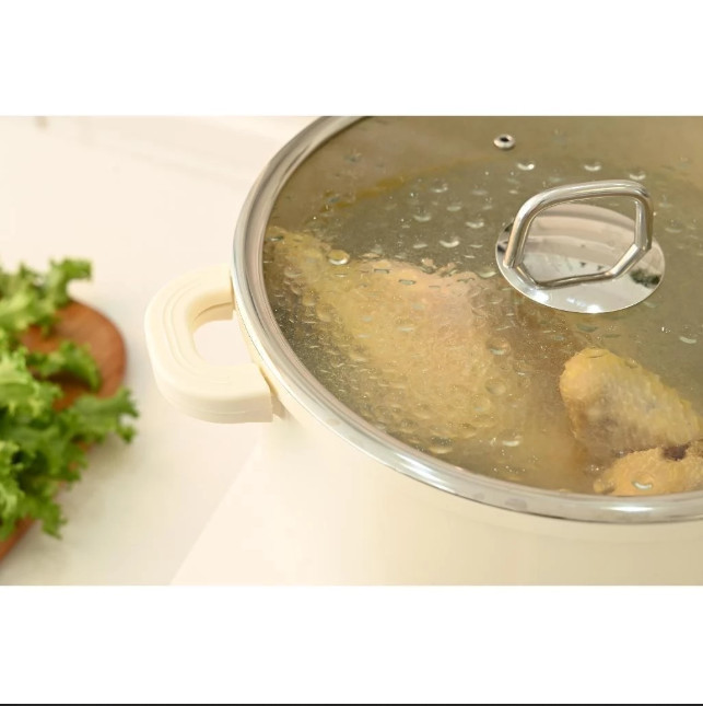 Chất liệu nồi nấu: + Inox 304 cao cấp + Sử dụng phù hợp cho tất cả các loại bếp và bếp từ + Tiết kiệm năng lượng tối ưu Nắp kính: + Thiết kế