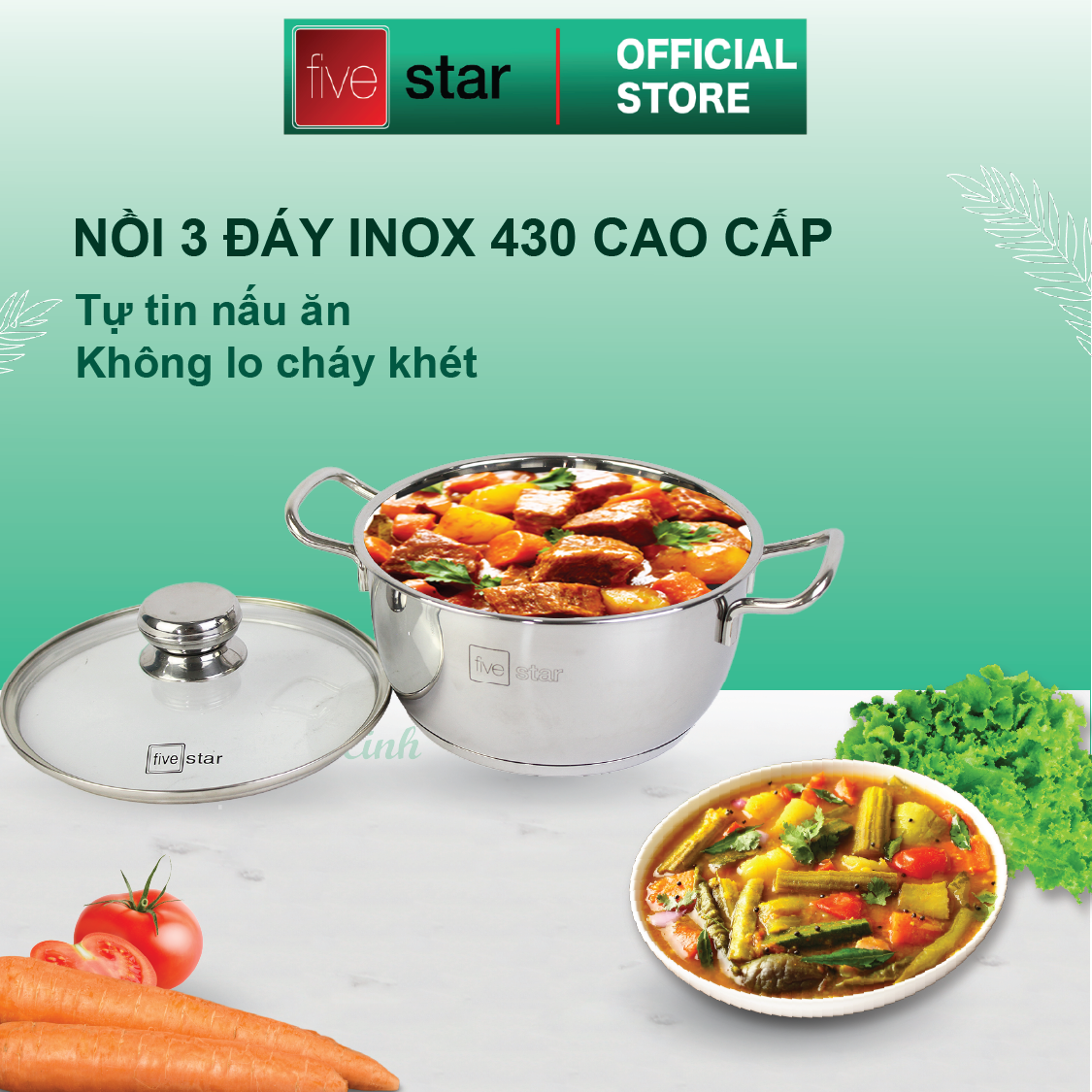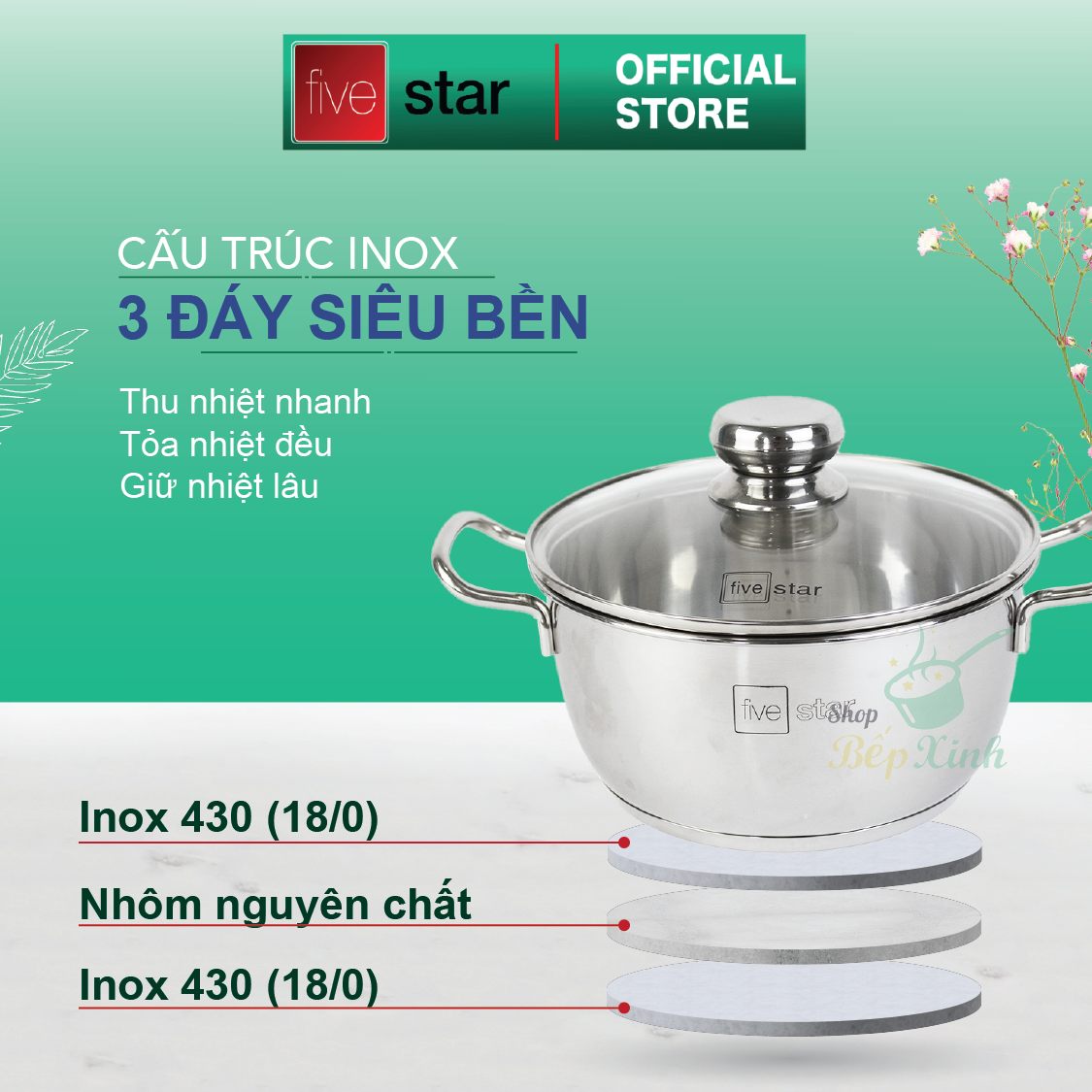 Bộ xửng hấp 3 đáy inox 430 FiveStar