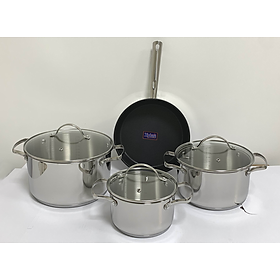Bộ sản phẩm gồm 3 nồi size: Ø16, Ø20, Ø24 cm và 1 chảo Ø24 cm với lớp chống dính XylanPlus của công ty Whitford (Mỹ) an toàn cho sức khỏe và siêu bền