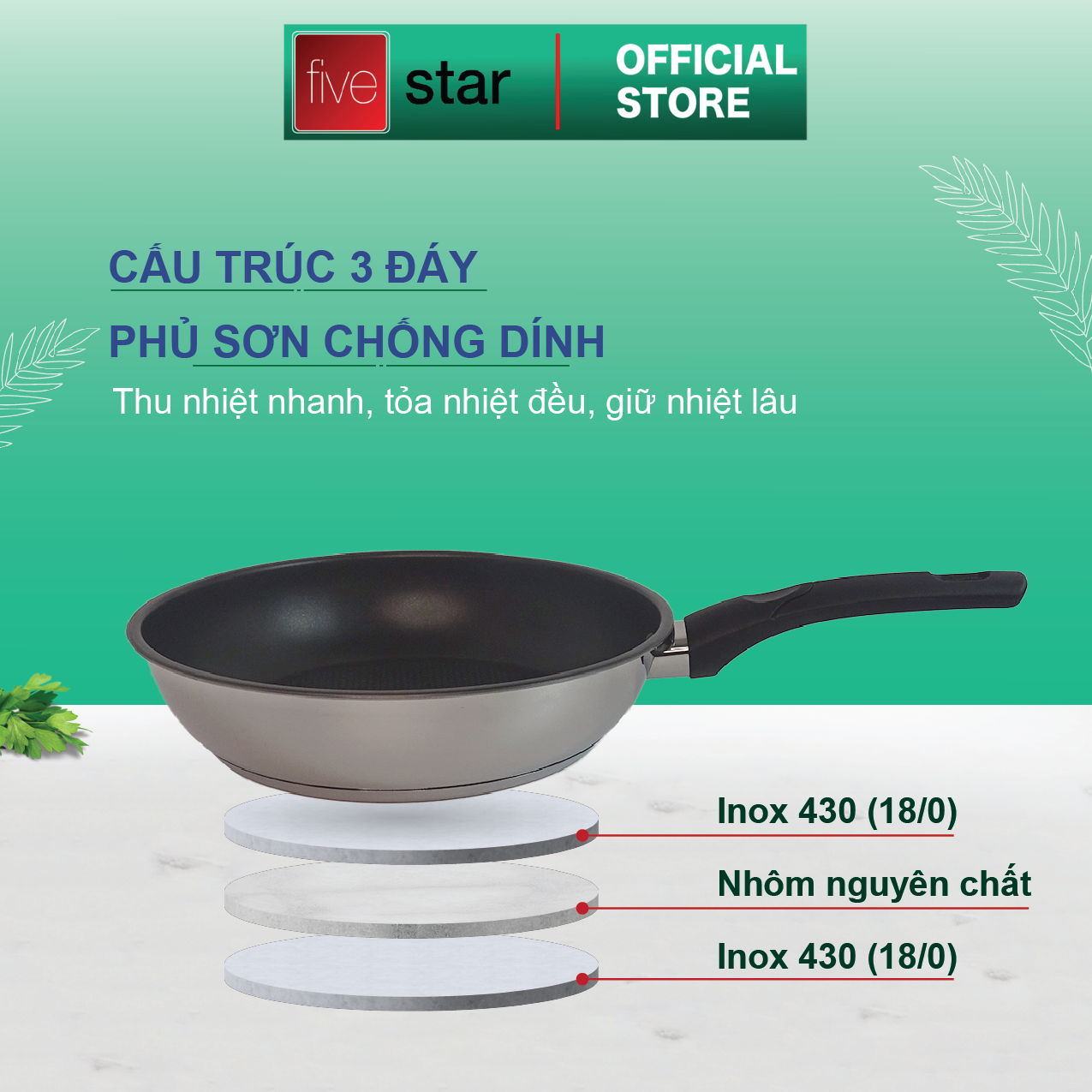 Mua tại TiktokBộ nồi inox và chảo chống dính cao cấp Fivestar 4 món 3 đáy từ , nắp kính ( tặng 1 sạn inox )