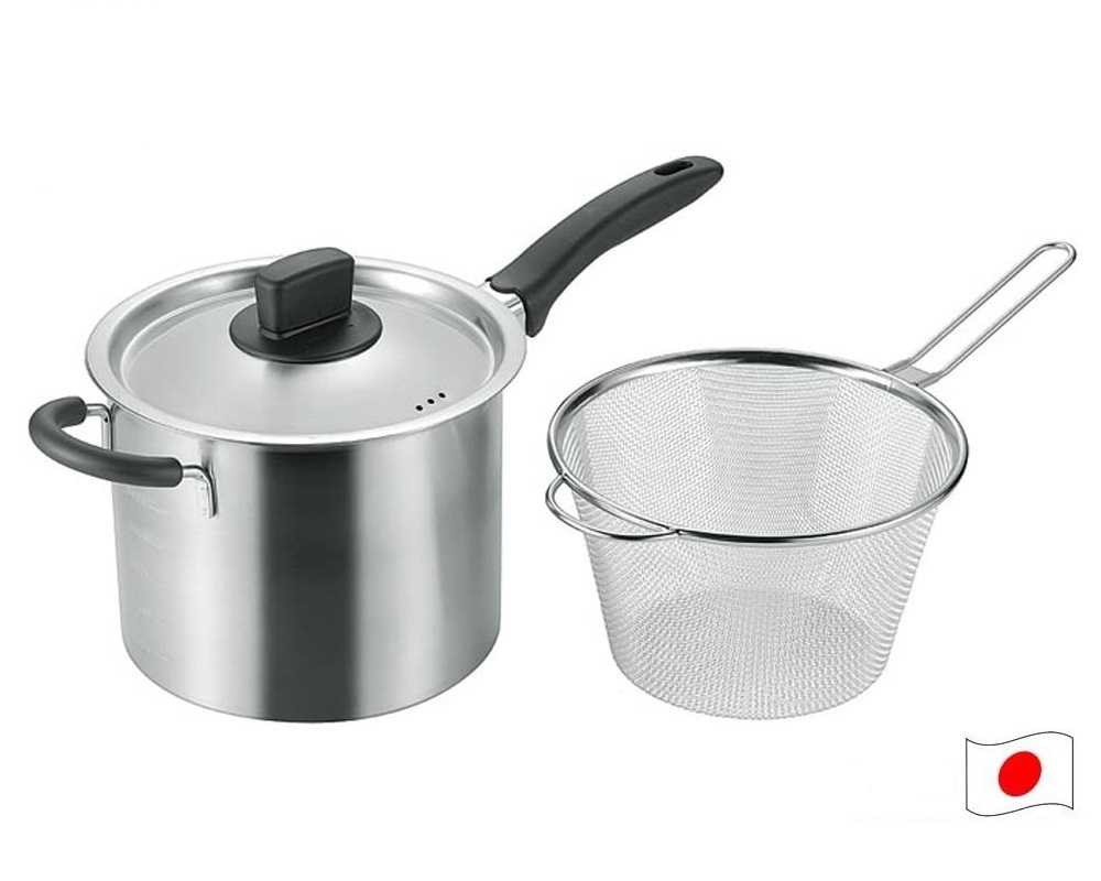 Bộ nồi xửng hấp inox có tay cầm kèm vợt lọc Tsubame -nội địa Nhật Bản - Chất liệu: Thân & nắp bằng inox cao cấp không gỉ, tay cầm & núm cầm bằng nhựa Phenolic