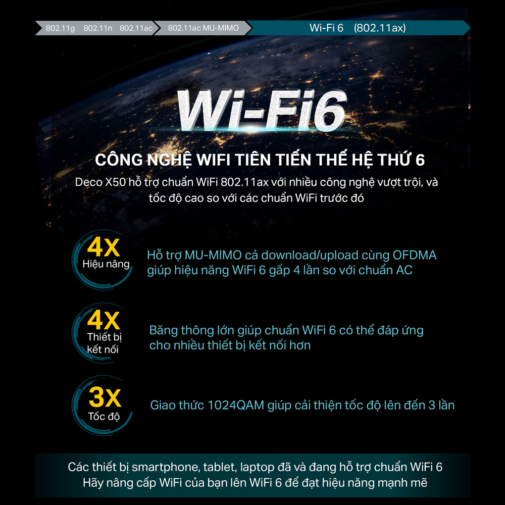 - Kết Nối Nhiều Thiết Bị Hơn: Công nghệ OFDMA và MU-MIMO tăng gấp bốn lần dung lượng để cho phép truyền đồng thời đến nhiều thiết bị hơn.