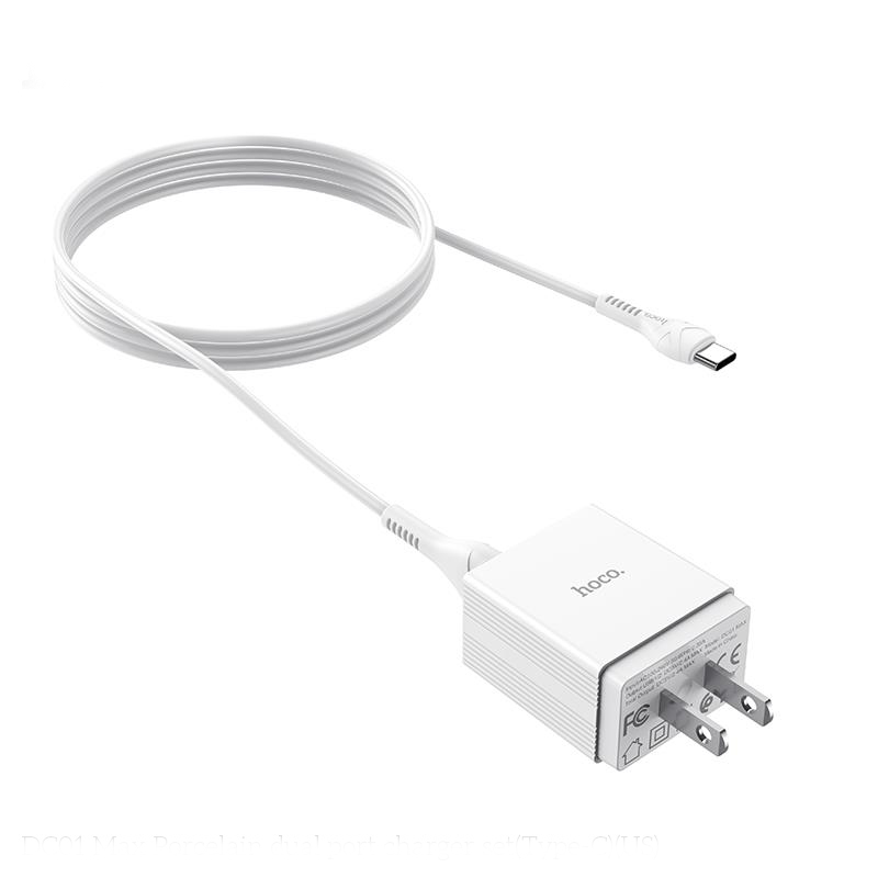 ✨Bộ sạc 2.4A Hoco DC01 Plus chân cắm dẹt kèm dây sạc Type-C dài 1M cho Android - Hàng chính hãng