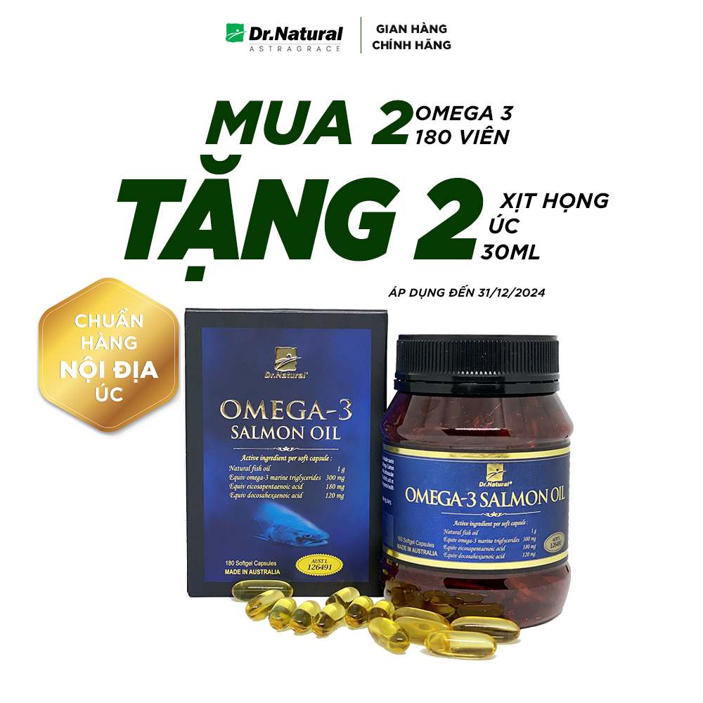 ✨Bộ Sản Phẩm 2 Hộp Viên Dầu Cá Hồi DR Natural Omega 3 Salmon Oil 180 Viên | Hàng Chính Hãng