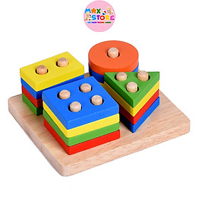 Đồ chơi an toàn thả gỗ học hình khối 4 trụ cho bé