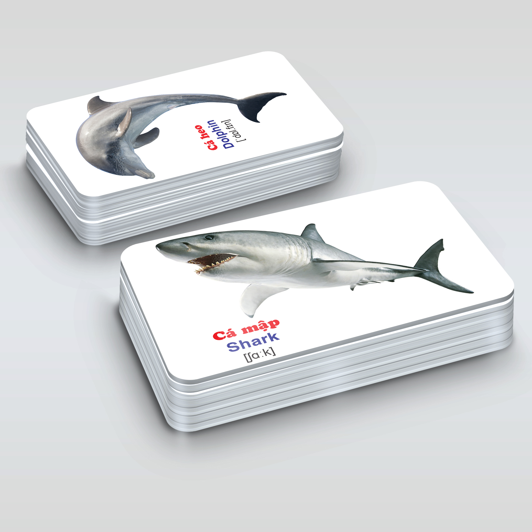 Thẻ được in bằng chất liệu giấy thân thiện với môi trường và màu mực thân thiện với sức khỏe của bé. Chưa hết, trên mỗi thẻ học, Tuấn Việt Books còn in ẵn tên thẻ bằng cả tiếng Anh (kèm phiên âm) và tiếng Việt giúp bé phát triển bộ ngôn ngữ thật hoàn hảo!