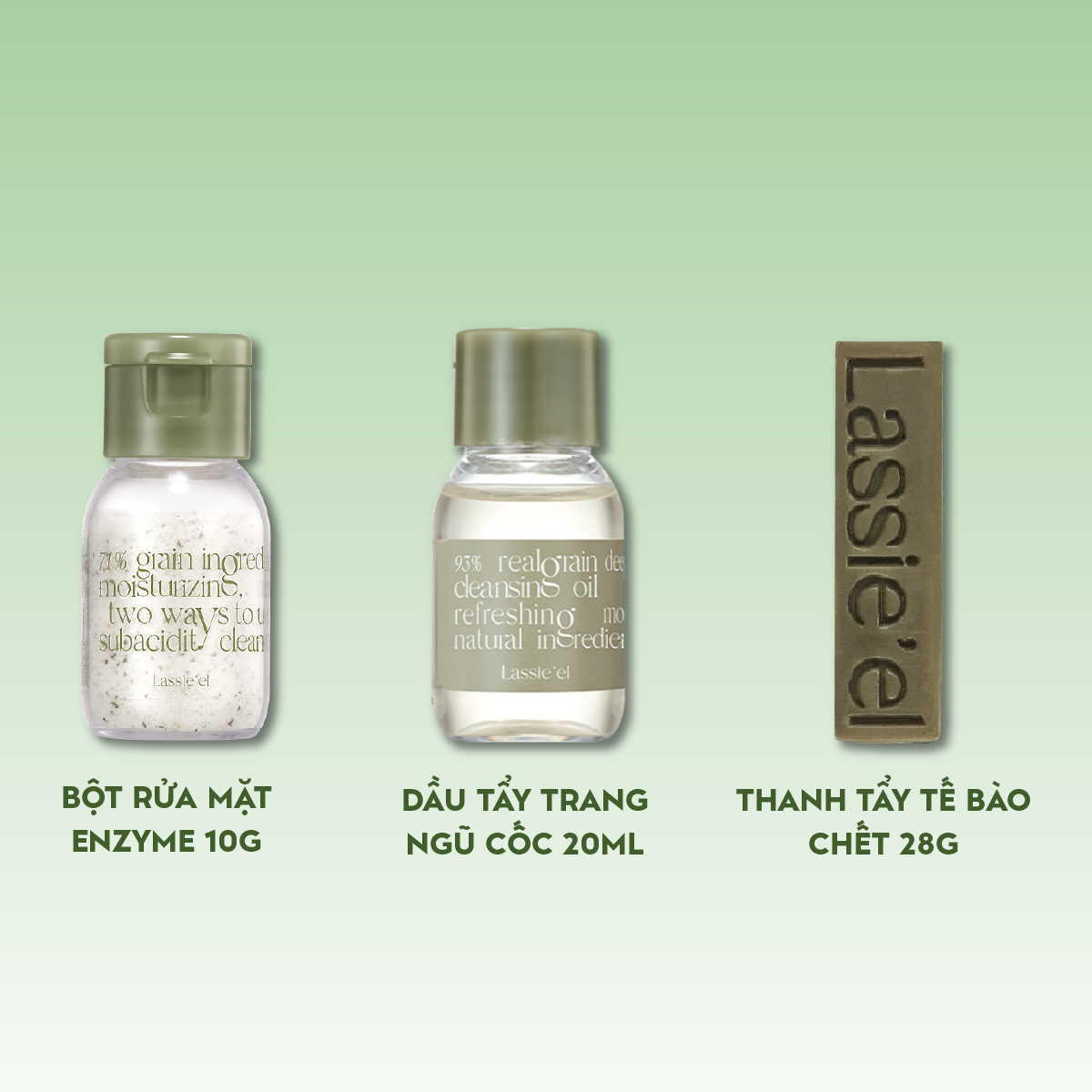 Bộ travel kit 3 sản phẩm làm sạch da Lassie'el chiết xuất từ thiên nhiên sạch sâu sáng da dưỡng ẩm Bộ travel kit 3 sản phẩm làm sạch da Lassie'el được nghiên cứu và