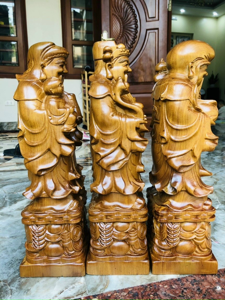Mua tại Tiktok_ Bộ tượng tam đa phúc lộc thọ được làm bằng chất liệu gỗ bách xanh tự nhiên 100%