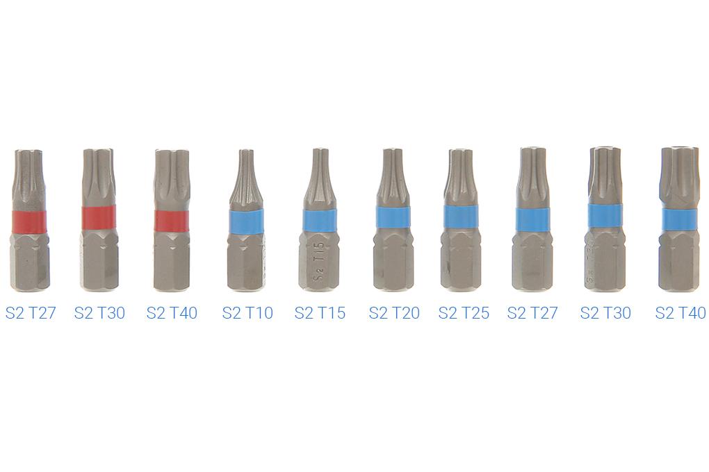 • Torx: T10-T15-T20-T25-T27-T30-T40