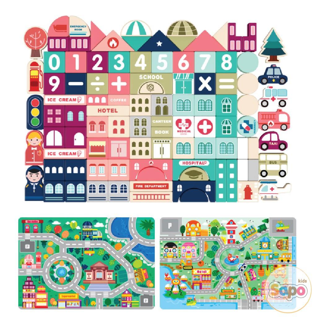 Đồ chơi xếp hình xây dựng thành phố bằng gỗ 133 chi tiết
