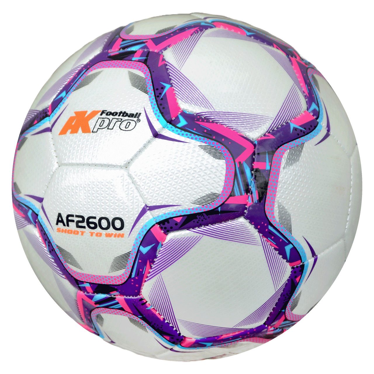 Bóng đá AKpro AF2600 Tím được sản xuất bằng công nghệ Khâu máy với chất liệu da PU có độ nảy ổn định, bóng êm, hướng bay chuẩn, khả năng chống thấm nước tương đối tốt, ít bị mài mòn. Bóng có cấu tạo nhiều lớp với lớp phủ bề mặt bằng Cao bóng nên không bị biến dạng qua quá trình sử dụng và có độ bền cao. Phần ruột bóng Butyl được làm từ chất liệu bền, cho khả năng giữ hơi cực tốt.