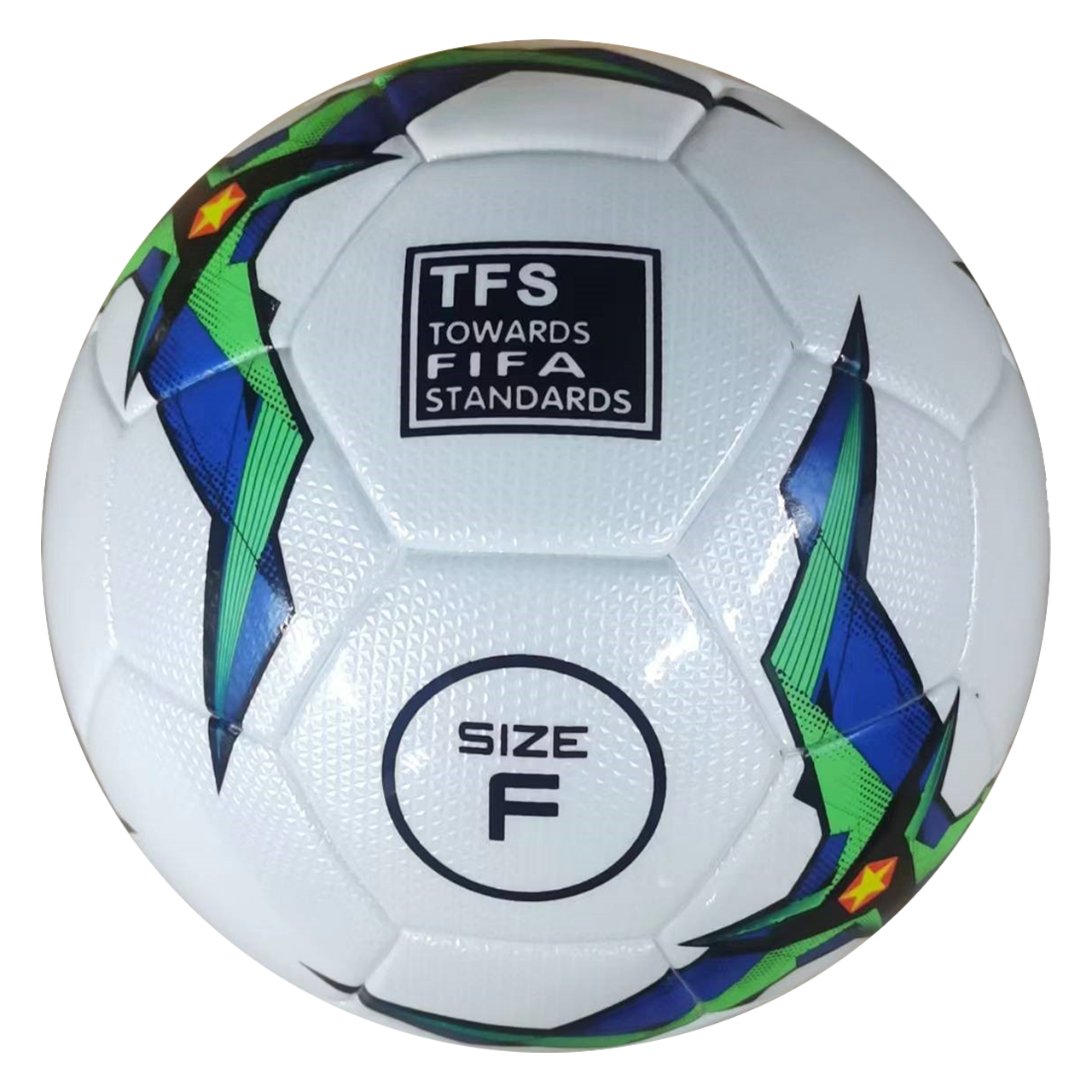 Tiêu chuẩn FIFA Quality Mã sản phẩm: F9N3555 Size: F Số miếng ghép: 32 Màu: Trắng – Xanh – Cam Sản xuất tại: Pakistan Chất liệu: Da PU đặc biệt Ruột bóng: Latex Công nghệ: