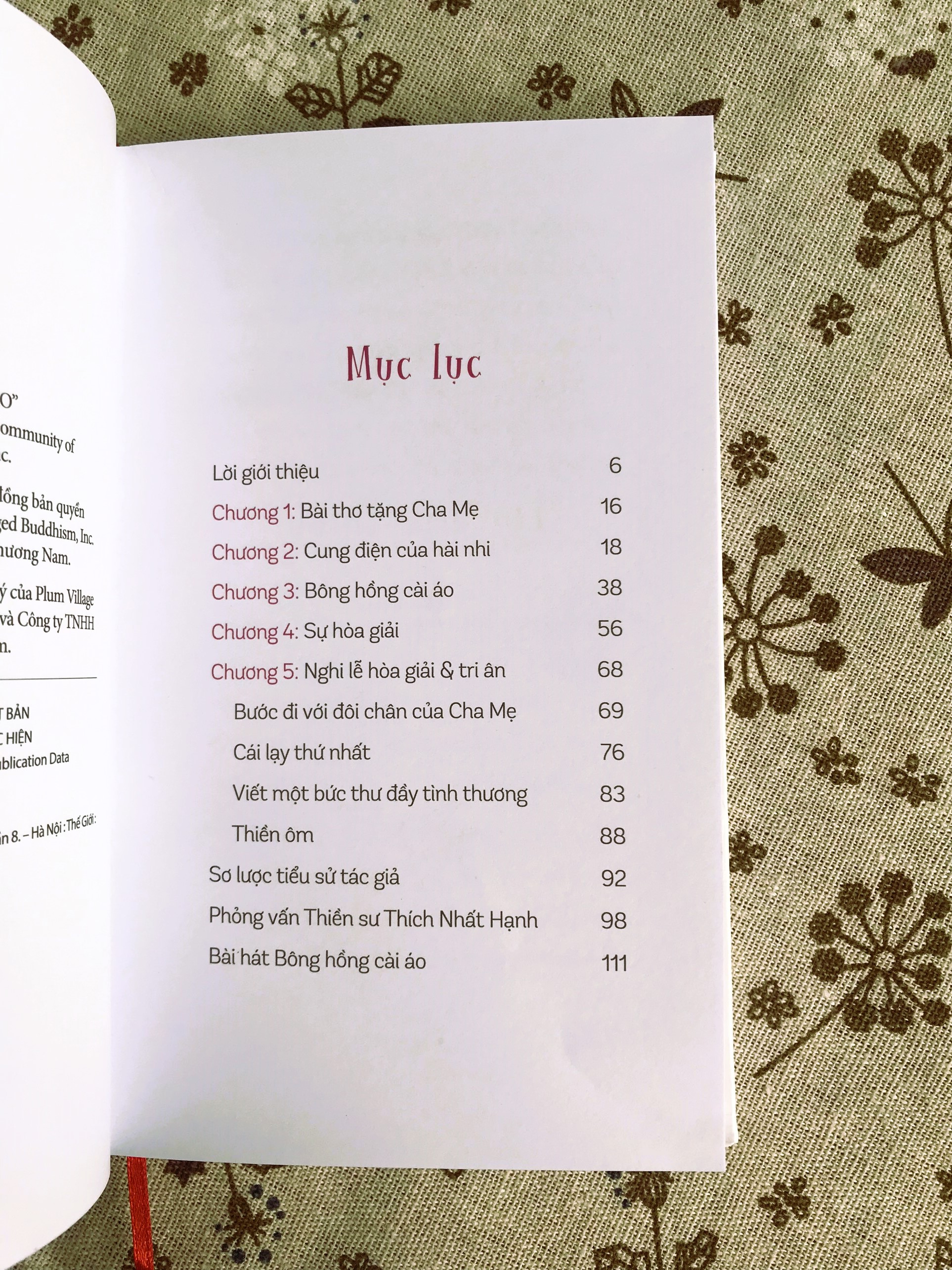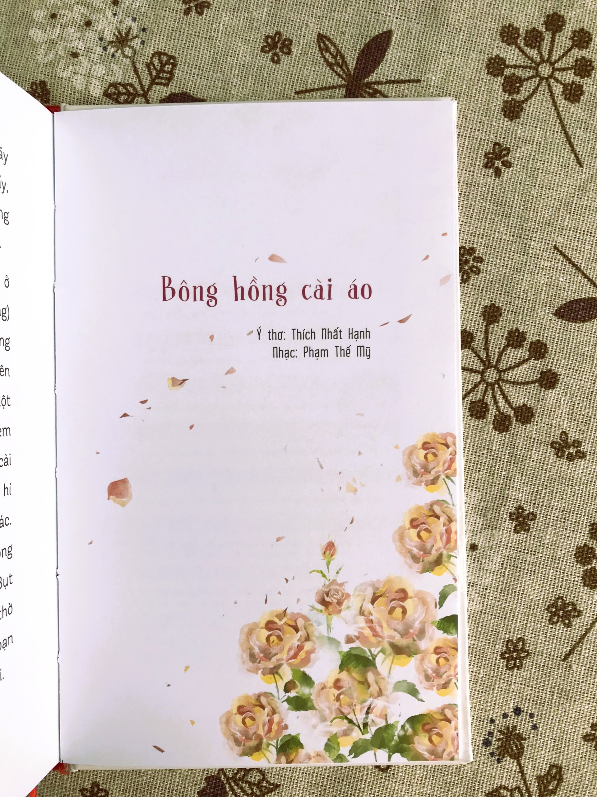 Cuối cùng bản văn, nhà sư Nhất Hạnh viết :"Ðó là điệp khúc tôi muốn ca hát cho anh nghe hôm nay. Và anh hãy ca, chị hãy ca cho cuộc đời đừng chìm trong vô tâm, quên lãng. Ðóa hoa mầu hồng tôi cài trên áo anh rồi đó. Anh hãy sung sướng đi!"